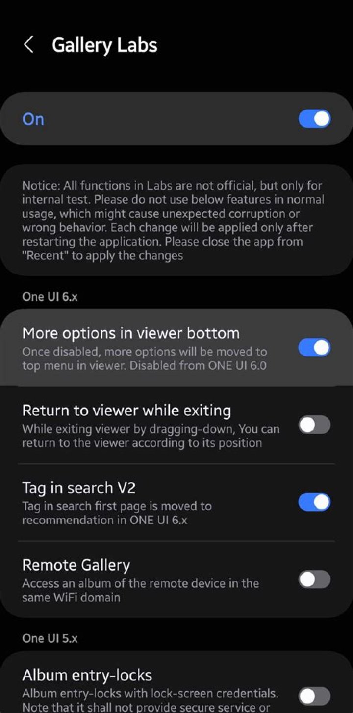 Enable Labs in the Samsung Gallery app