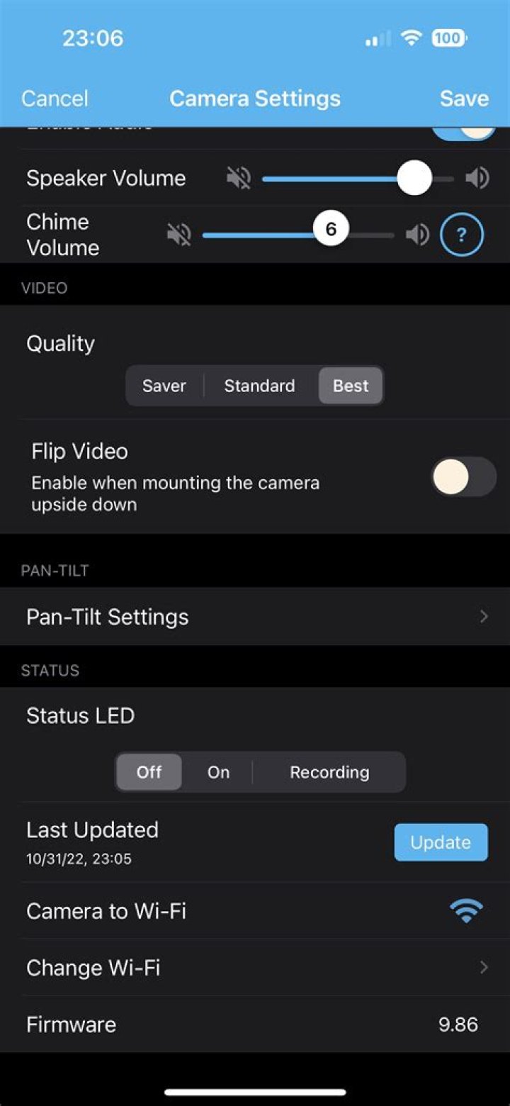 Now that your camera is connected to the mount, you can move it while viewing a live feed. Open the app and view your camera's live feed, and you'll notice arrows to move the camera. There are also some additional settings in the menu part of the Blink indoor Mini camera now.